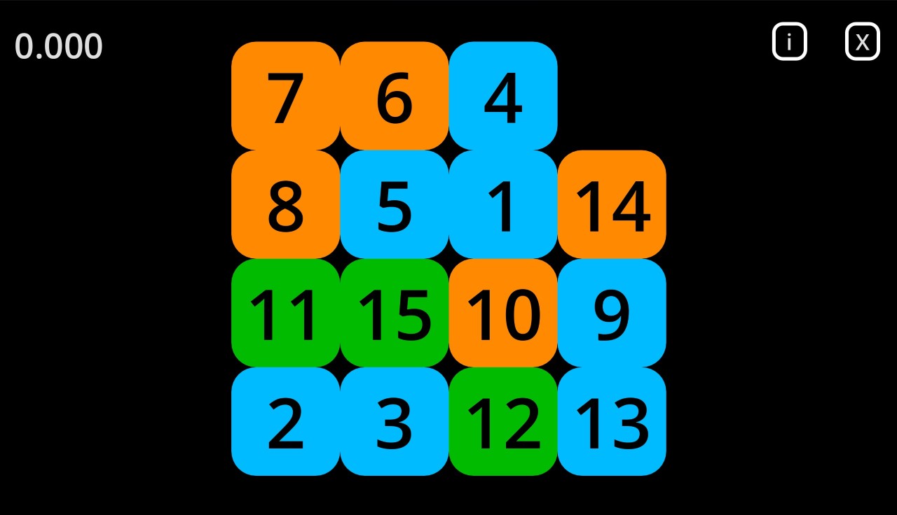 - Arrange the tiles in ascending order, left to right, top to bottom